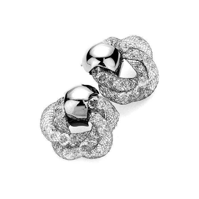 Brynn Knotted Stardust Door Knocker Mesh & Stones Stud Earrings, ultra-chic will take your look, up a notch, versatile enough for wearing straight through the week, perfectly lightweight for all-day wear, coordinate with any ensemble from business casual to everyday wear, the perfect addition to every outfit.