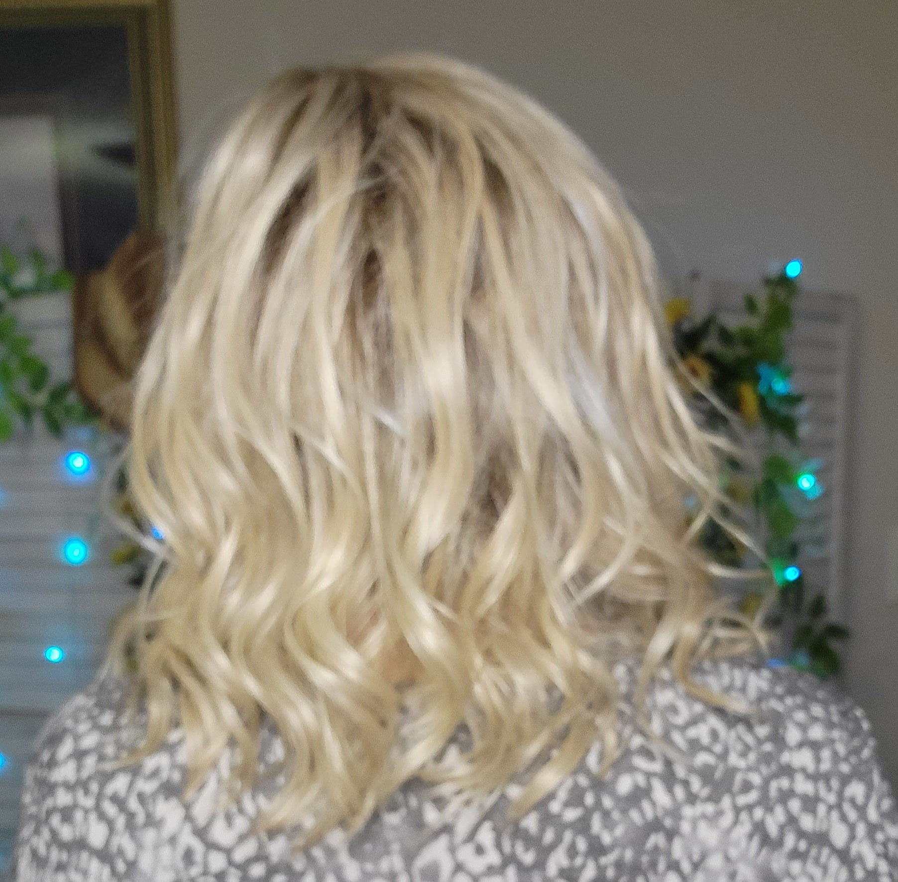 Grace is a headful of soft, tousled waves that land just above the collarbone. With natural-looking dark roots and a deep side part, this is a little bit sassy and ever so sweet. Get ready to turn heads.
