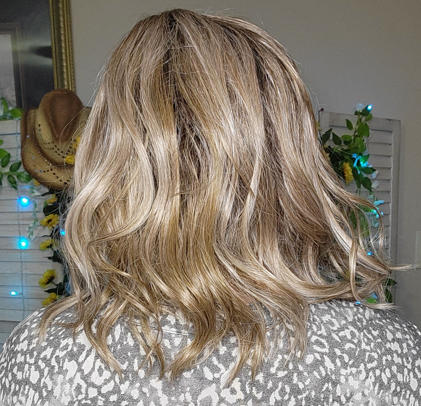 Grace is a headful of soft, tousled waves that land just above the collarbone. With natural-looking dark roots and a deep side part, this is a little bit sassy and ever so sweet. Get ready to turn heads.