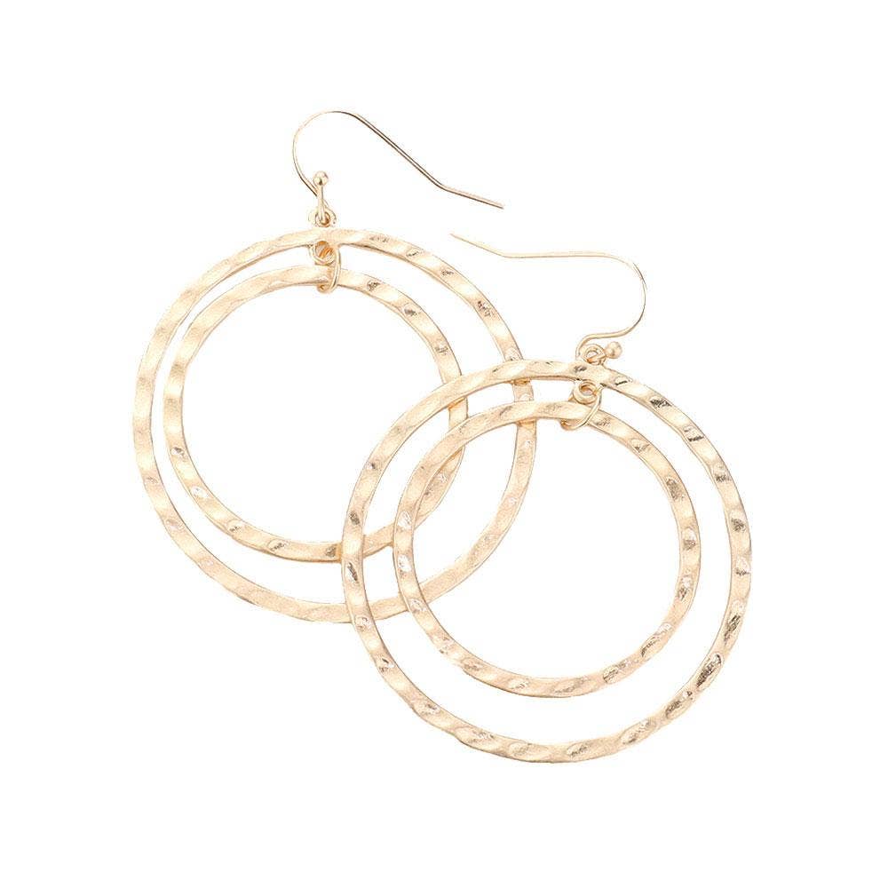 Textured Double Open Metal Circle Dangle Earrings